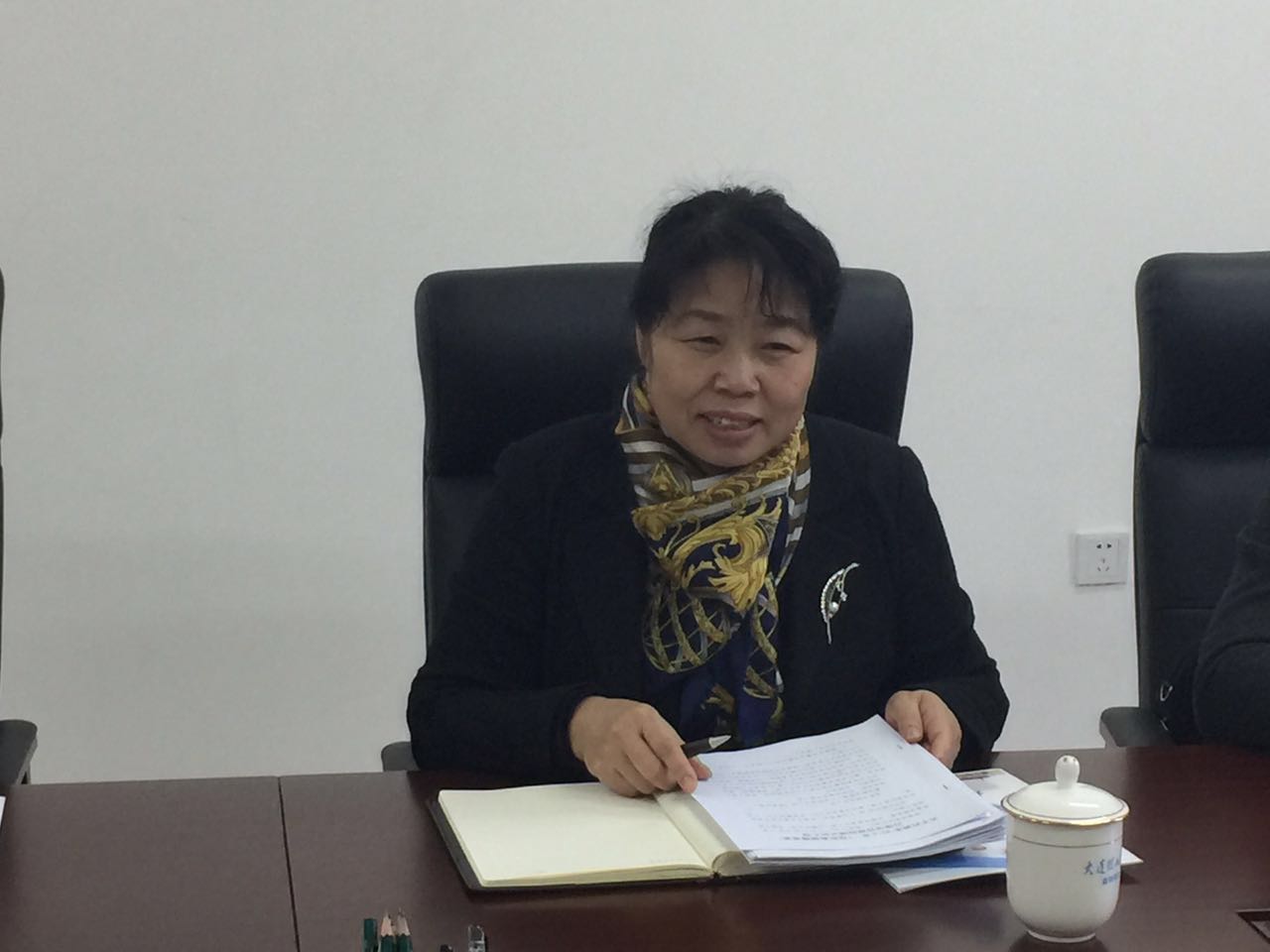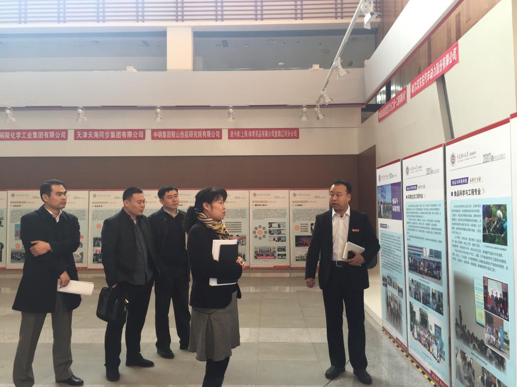 此外,何局一行还参观了校区展板,许建强老师为其详细介绍了盘锦校区和研究院的创办与发展历程。