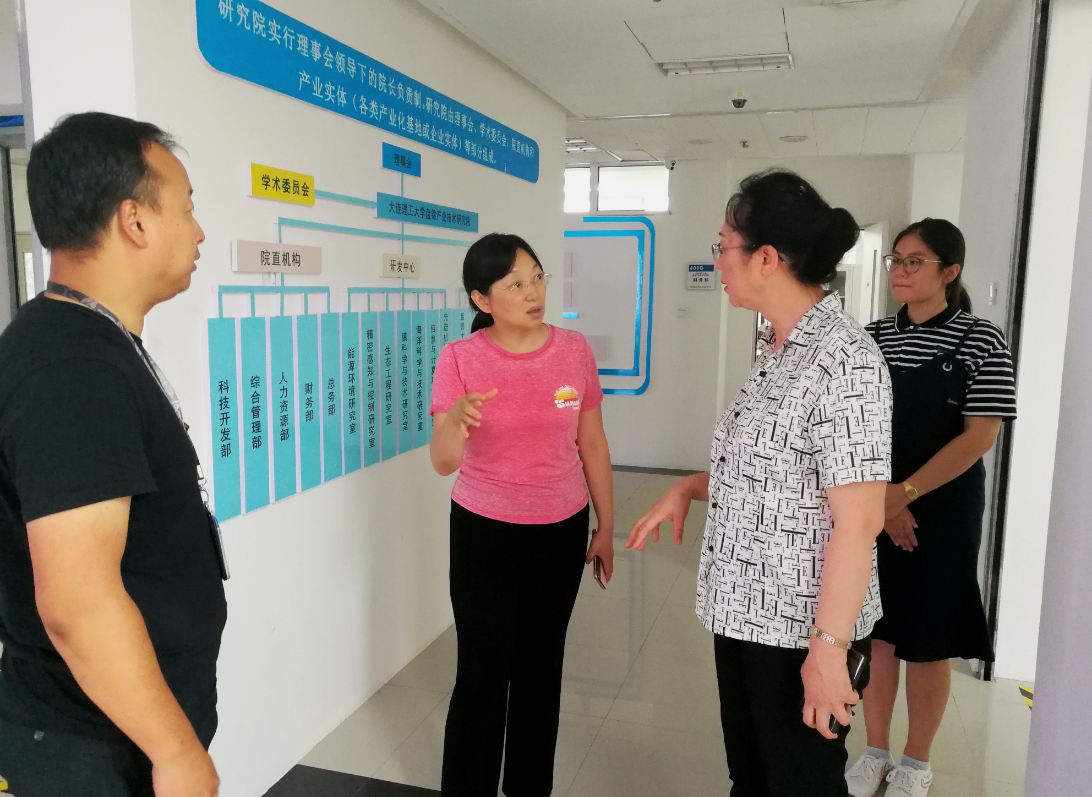 贺高红院长首先对盘锦市一直以来给予研究院发展的支持表示感谢,并向贾副市长简要介绍了研究院发展情况。贺院长表示,研究院成立三年来,在市委市政府的亲切关怀和大力支持下,不断引进高水平科研人才,大力提升研发水平,初步做到了稳中有进,科研业务顺利持续开展。在上级部门密切指导下,在全体员工的共同努力下,研究院获批“青年文明号”、“工人先锋号”等多项荣誉。贺院长希望盘锦市继续加强对研究院的支持和指导,继续提升研究院服务我市科技产业发展水平。