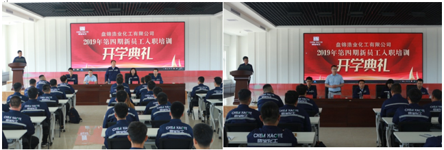 生产技术总监牟文洲和浩业分院院长助理郭明钢分别在开学典礼上致辞。牟文州表示欢迎大家加入浩业化工,大家要做好个人职业生涯规划,先要自我独立,养活自己,再要提升自我,实现自己的价值和抱负,大家共同努力建设好浩业化工这艘大船。郭明钢助理表示欢迎大家加入浩业化工及浩业分院,浩业分院为大连理工大学盘锦产业技术研究院与盘锦浩业化工有限公司共同建立,它将是浩业化工自主创新的排头兵,浩业分院不仅有专职骨干科研人员,还将从浩业化工选拔兼职科研人员,一起为浩业化工创新事业奋斗。