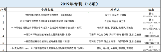 2019年研究院新申请专利共计16项,其中授权2项,公开4项,共发表论文26篇。