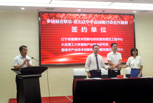 辽宁省技术创新研发工程中心聚焦国家和辽宁科技创新及产业发展方向,构建以企业为主体、市场为导向、产学研深度融合的技术创新体系,形成“建设一个省创新研发与成果转化联盟、搭建一个省多链融合对接服务平台、开展一项多链融合联动—助力辽宁千企创新行动、打造一支企业科技创新多链融合服务团队、服务一批科技企业”的“五个一”科技创新服务模式。2021年8月31日,研究院获全省首批成立的8家 “多链融合”服务团之一。