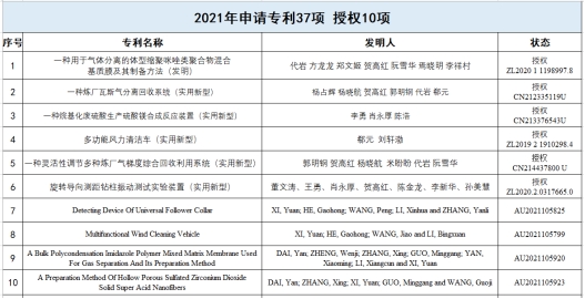 2021年,研究院获批纵向科研项目8项,新增横向科研项目29项。新申请专利37项(授权及公开14项)、发表论文40余篇。