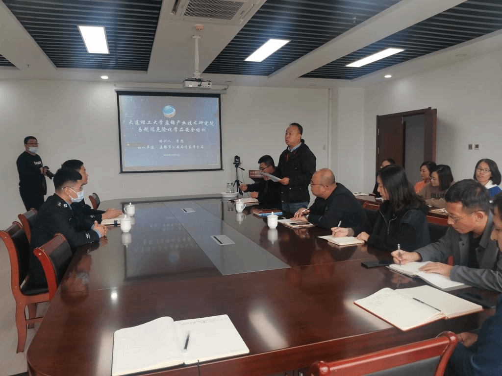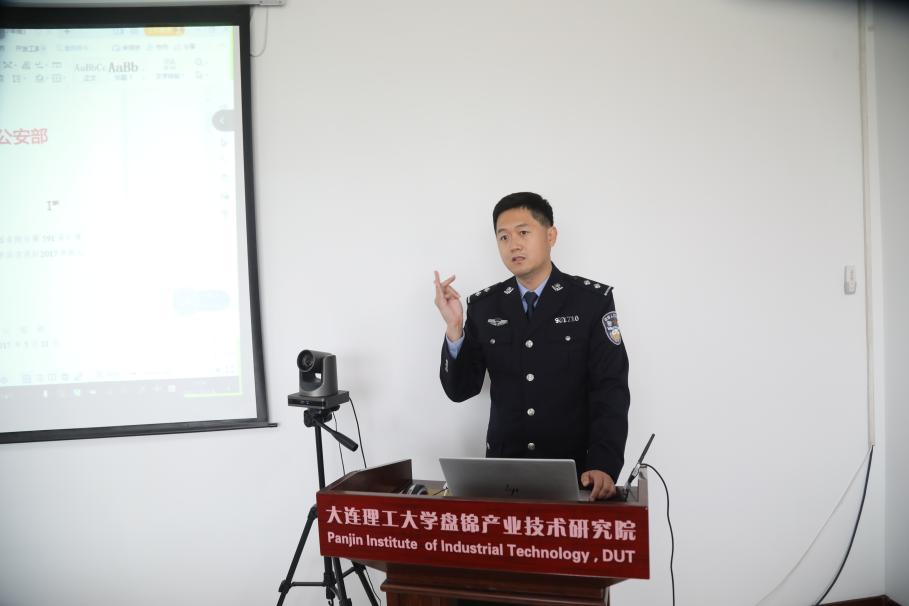 并表示将协助我院建立完善的易制爆(剧毒)危险药品安全管理规范系统。最后,李警官特别强调:安全工作无小事、平安你我靠大家,希望研究院的各位老师同学与辽东湾公安局携手共同打造安全规范的科研环境,为平安盘锦做出自己的贡献。