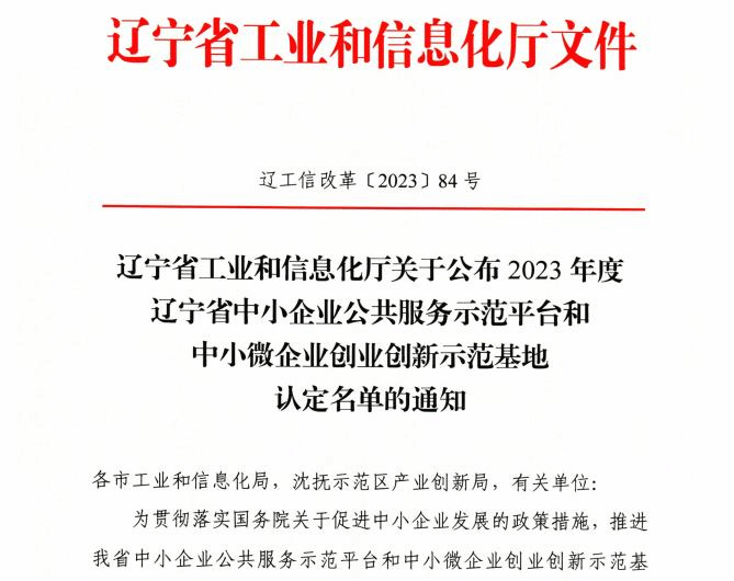 7月11日,辽宁省工业和信息化厅公布2023年度辽宁省中小企业公共服务示范平台和中小微企业创业创新示范基地认定名单。大连理工大学盘锦产业技术研究院被认定为辽宁省中小企业公共服务示范平台——大连理工大学盘锦产业技术研究院中小企业技术创新综合服务平台,服务功能:技术服务。