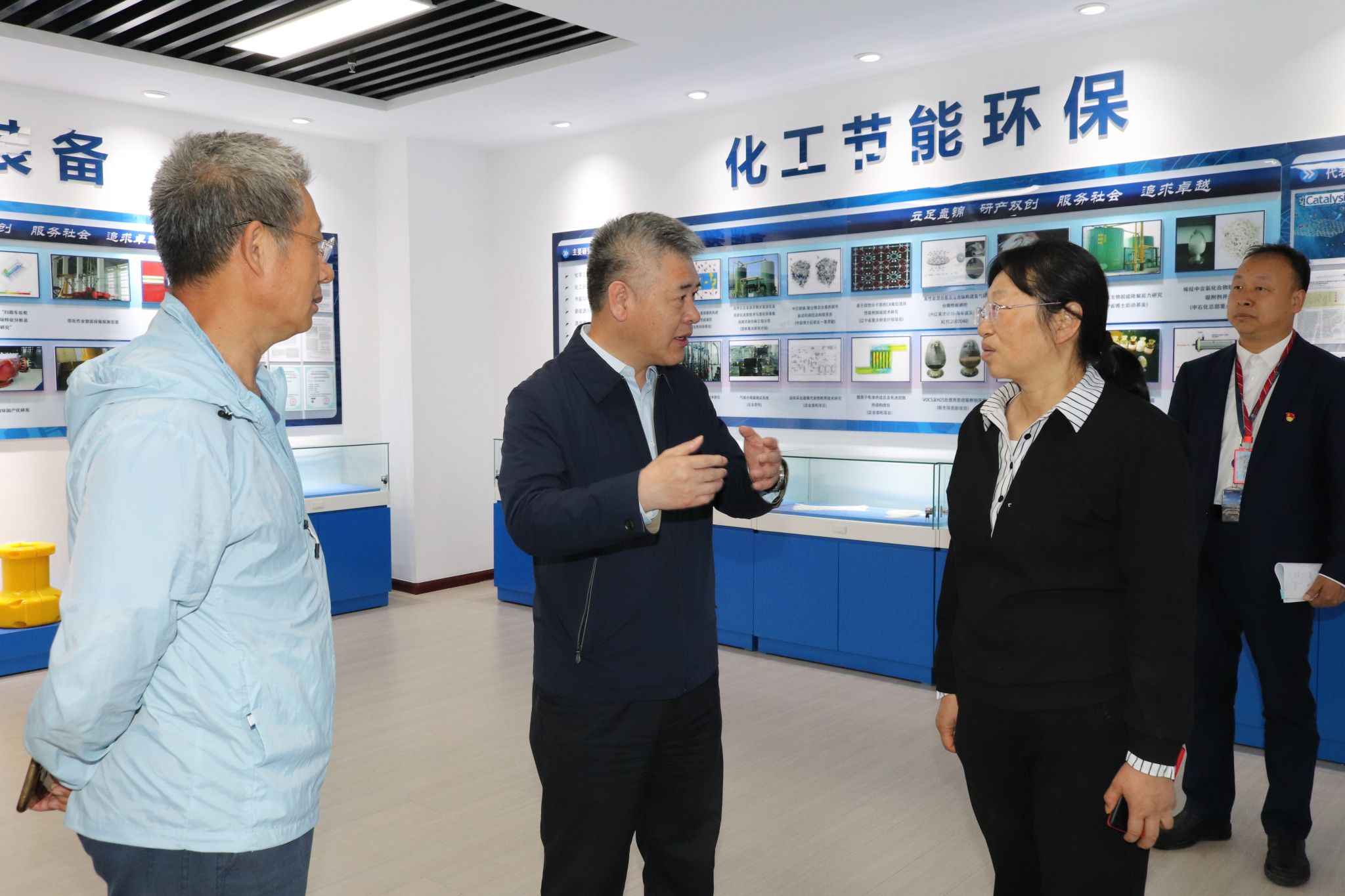 在贺高红的带领下,张迎一行首先参观了研究院成果展厅,贺院长介绍了研究院围绕盘锦产业优势和地域特色,在化工节能环保、营养与微生态、高端装备与现代服务四个重点领域的科研进展与项目成果等。随后,双方进行座谈交流。