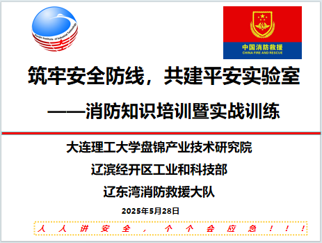 为切实增强师生消防安全意识,提升应急处置能力,5月28日,大连理工大学盘锦产业技术研究院联合辽滨经开区工业和科技部、辽东湾消防救援大队组织开展消防安全专题培训及应急演练活动。研究院研发中心主任李玉善、副主任季凤云及师生代表共计40余人参加活动,会议由研发中心主任助理梁正奇主持。