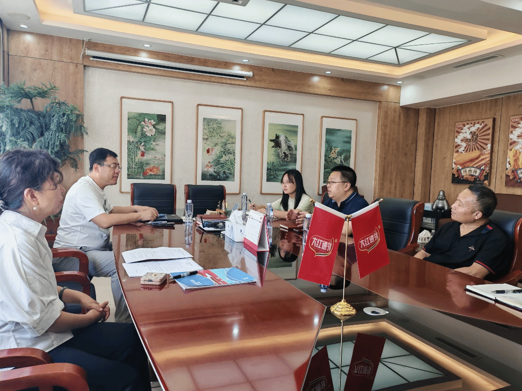 大红德邻公司杨宇董事长热烈欢迎调研组一行莅临考察,并从企业经营现状、产品类别、现有生产设备及人员配置等方面作了全面介绍。闫志刚介绍了研究院的整体架构、科研方向与核心优势,双方围绕企业具体需求及合作契合点进行了充分交流。