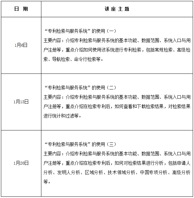 讲座地点:国家知识产权局专利文献馆检索室(1号楼0222房间),参加讲座请提前报名。