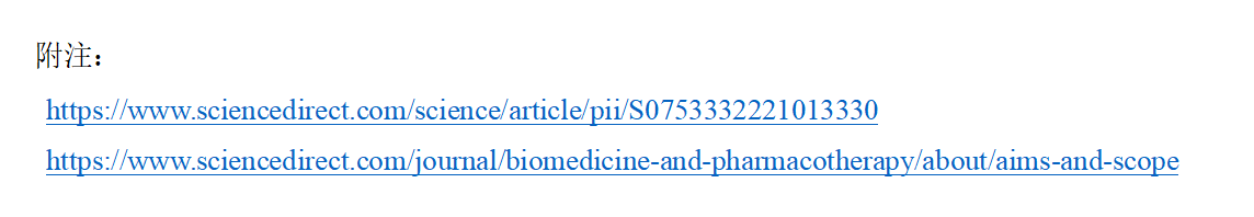 12月23日,我院生化药理研究室在Elsevier旗下生物医药领域主流期刊Biomedicine & Pharmacotherapy(JCR_Q1,中科院二区Top期刊,IF=6.529)发表研究论文。我院为科研论文完成共同第一单位。