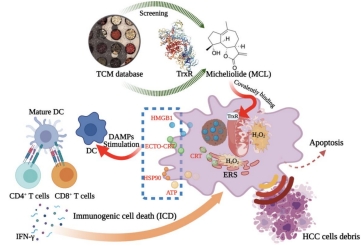 在本研究中,通过综合应用药物虚拟筛选、酶活检测和细胞毒性分析等研究手段,发现并鉴定天然内酯化合物木香内酯(Micheliolide,MCL)是硒蛋白硫氧还蛋白还原酶(Thioredoxinreductase,TXNRD)抑制剂,并对肝癌细胞造成杀伤作用。木香内酯通过促进细胞氧化应激和内质网应激,诱导肿瘤细胞免疫原性死亡(Immunogenic cell death,ICD),触发荷瘤免疫活性小鼠中肿瘤消退。研究鉴定高活性的TXNRD天然抑制剂具有现实指导意义,揭示了TXNRD与ICD的关系,提供了药物靶向TXNRD用于肿瘤化疗新机制。