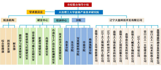 大工盘锦研究院大力发展产学研合作,注重对外交流,加强企业平台建设,为充分发挥大工盘锦研究院的优势,进一步提升企业的科技创新能力,大工盘锦研究院开辟企业合作新模式,有效整合和发挥研究院的人才、技术、科技资源优势与企业资金、成果转化和市场优势,进一步提升企业发展的质量和效益,为地方产业转型升级和经济持续发展注入新的动能。目前,大工盘锦研究院已成立浩业、东岳、宝来碳材料、中蓝、格林凯默五个分院。