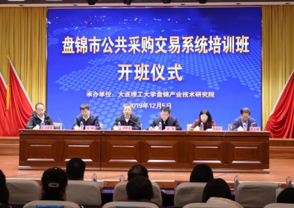 2019年12月5日下午,由盘锦市公共采购交易中心主办,大连理工大学盘锦产业技术研究院承办的“盘锦市公共采购交易系统培训班开班仪式”在盘锦市鼎信商业学校成功举办。市政府副秘书长祝强、市公共采购交易中心主任齐峰、副主任夏昆、隋国强、张扬、研究院理事长卢中昌、院长贺高红、副院长许建强、大连理工大学张志刚教授及来自市公共采购交易系统的近百名学员出席开班仪式,开班仪式由许建强主持。