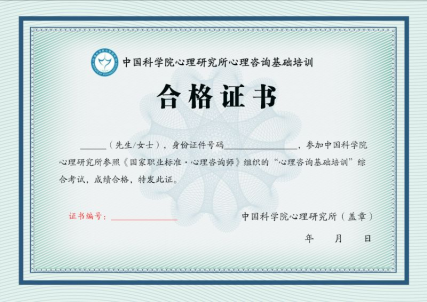 综合考试合格,由中国科学院心理研究所颁发《心理咨询基础培训合格证书》。