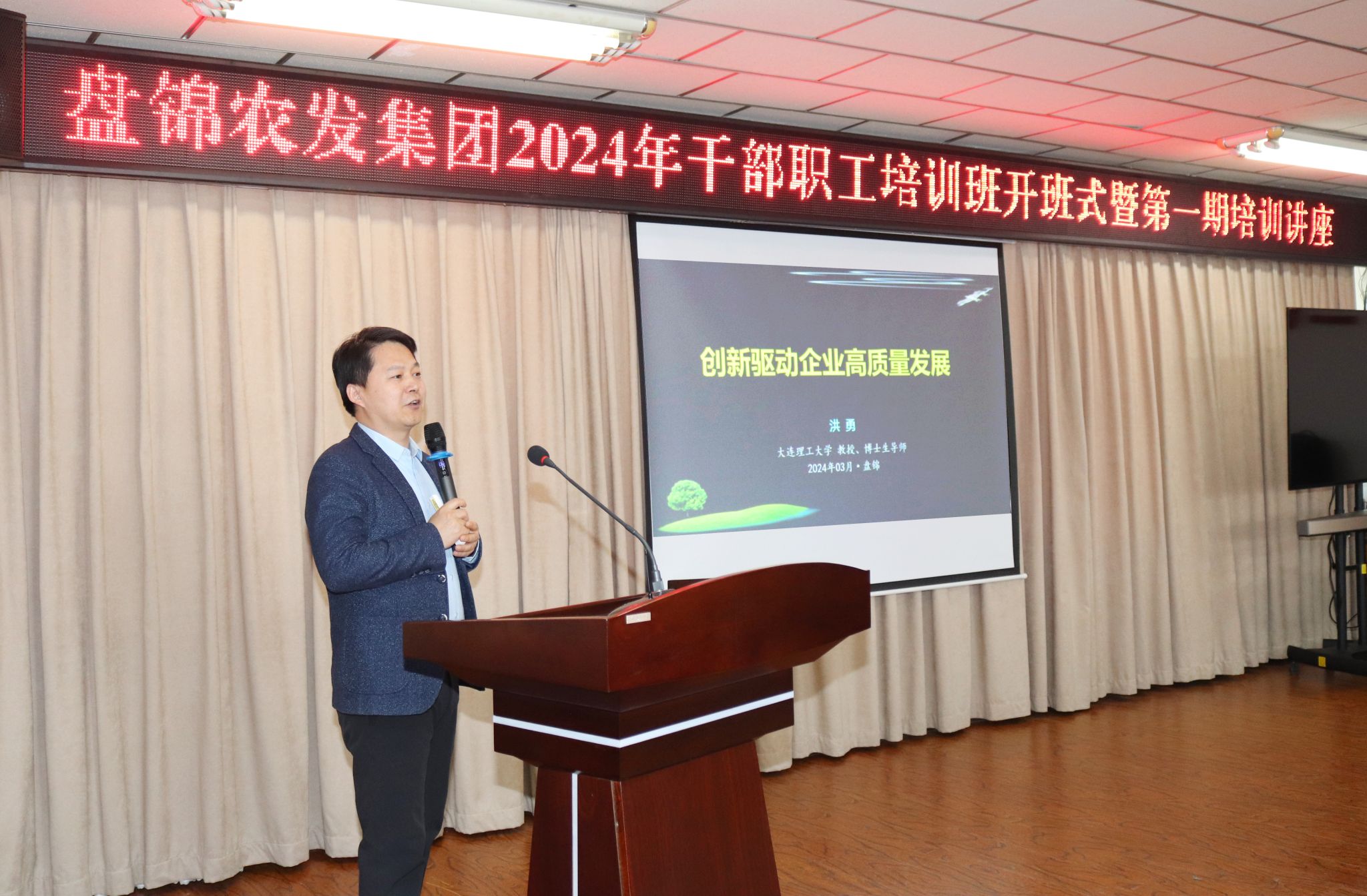 3月7日下午,由盘锦农业发展集团有限责任公司主办,大连理工大学盘锦产业技术研究院承办的“盘锦农发集团2024年干部职工培训班开班式暨第一期培训讲座”成功举办。盘锦农发集团董事长苑琳琳、副总经理陈庆鹏、副总经理张国利、纪委书记徐强,研究院院长贺高红、顾问卢中昌、院长助理李冰璇、技术转移中心主任闫志刚,大连理工大学商学院副院长洪勇教授及来自农发集团总部及各子公司干部职工约60名学员出席开班仪式,开班仪式由陈庆鹏主持。