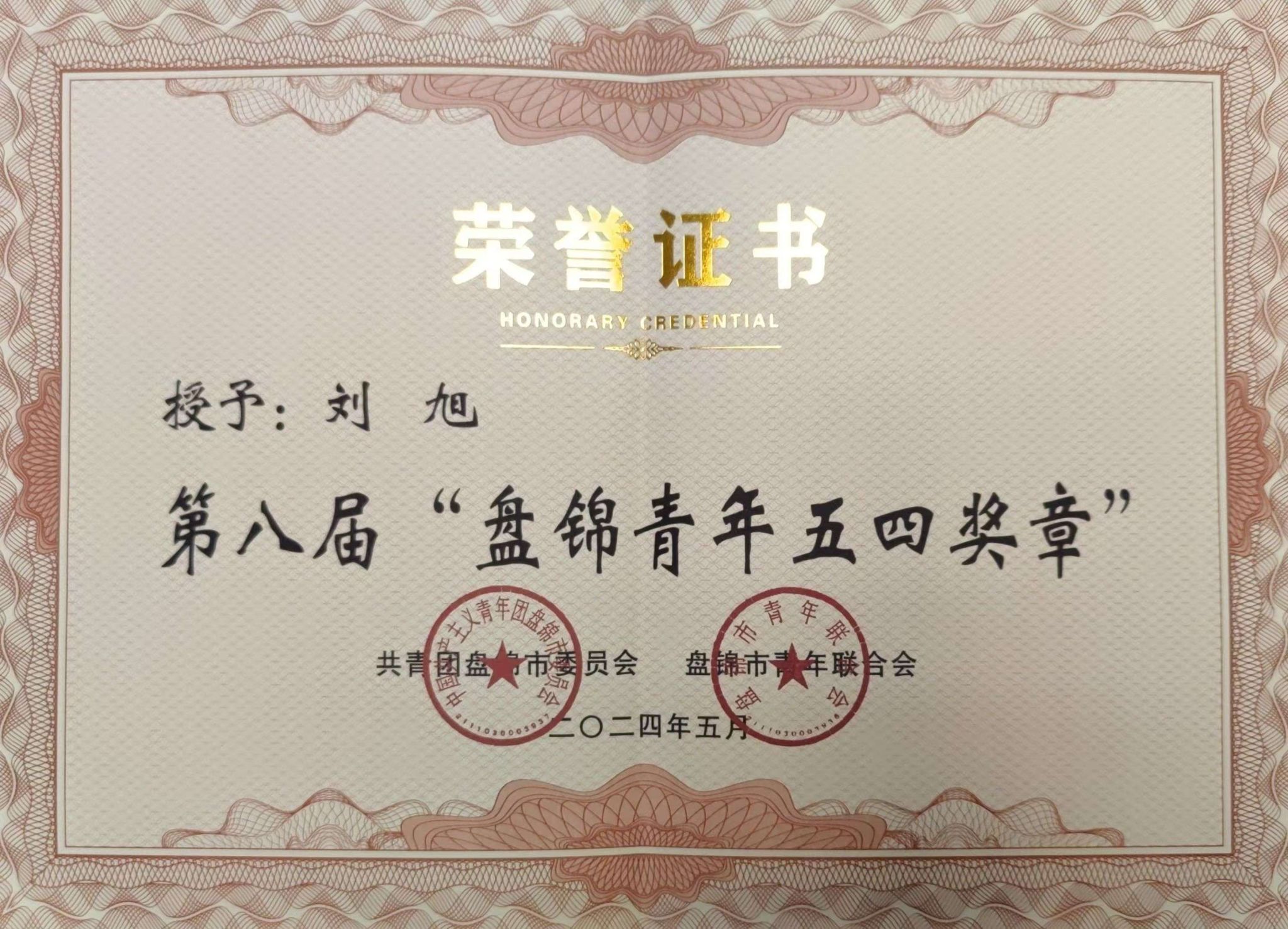高级工程师刘旭荣获盘锦市第八届“盘锦青年五四奖章”