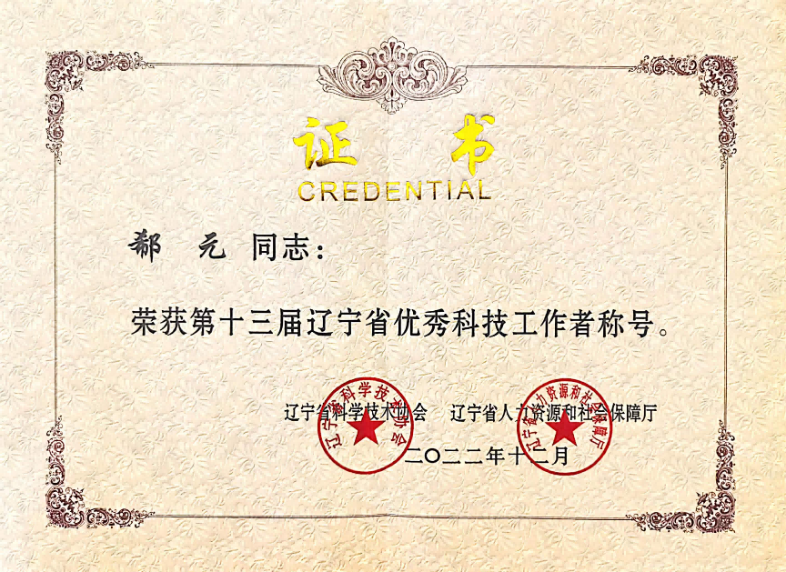 郗元正高级工程师荣获“第十三届辽宁省优秀科技工作者”称号