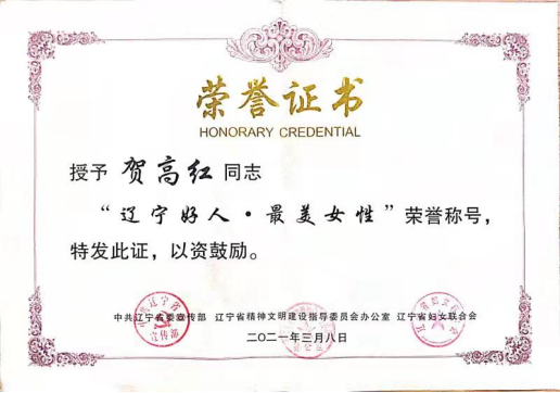 贺高红院长荣获“辽宁好人·最美女性”荣誉称号。