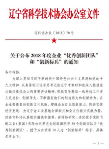 研究院公司获辽宁省“优秀创新团队”。