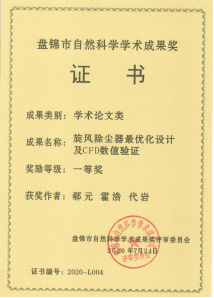 成果名称:旋风除尘器最优化设计及CFD数值验证。