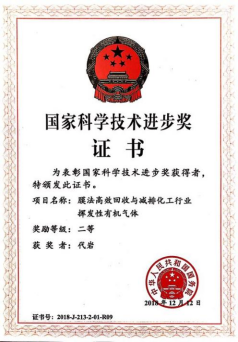 贺高红、代岩获国家科学技术进步二等奖。成果名称:膜法高效回收与减排化工行业挥发性有机气体。