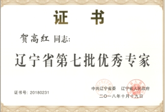 贺高红获“辽宁省第七批优秀专家”。授予单位:辽宁省人民政府。