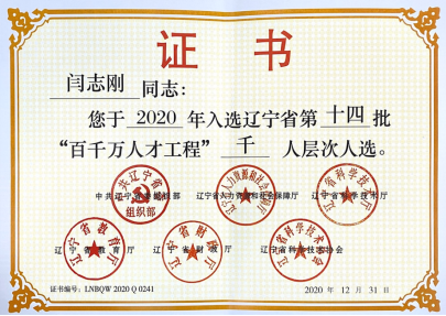 闫志刚入选辽宁省“百千万人才工程”千人层次。
