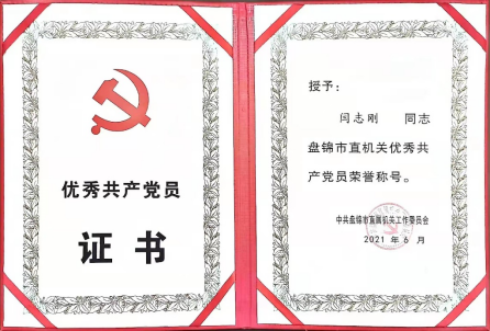 闫志刚荣获“盘锦市优秀共产党员”荣誉称号。