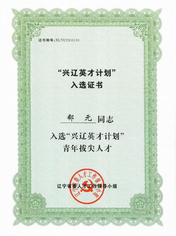 郗元正高级工程师荣获“兴辽英才计划”青年拨尖人才称号