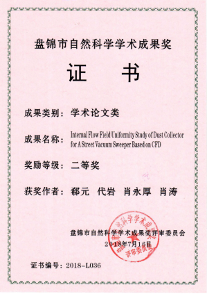 肖永厚获“盘锦市自然科学学术成果一等奖”。