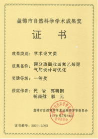 郗元获“盘锦市自然科学学术成果一等奖”。