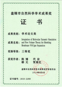 成果名称:Integration of Molecular Dynamic Simulation and Free Volume Theory fo Modeling Membrane VOC/gas Separation。
