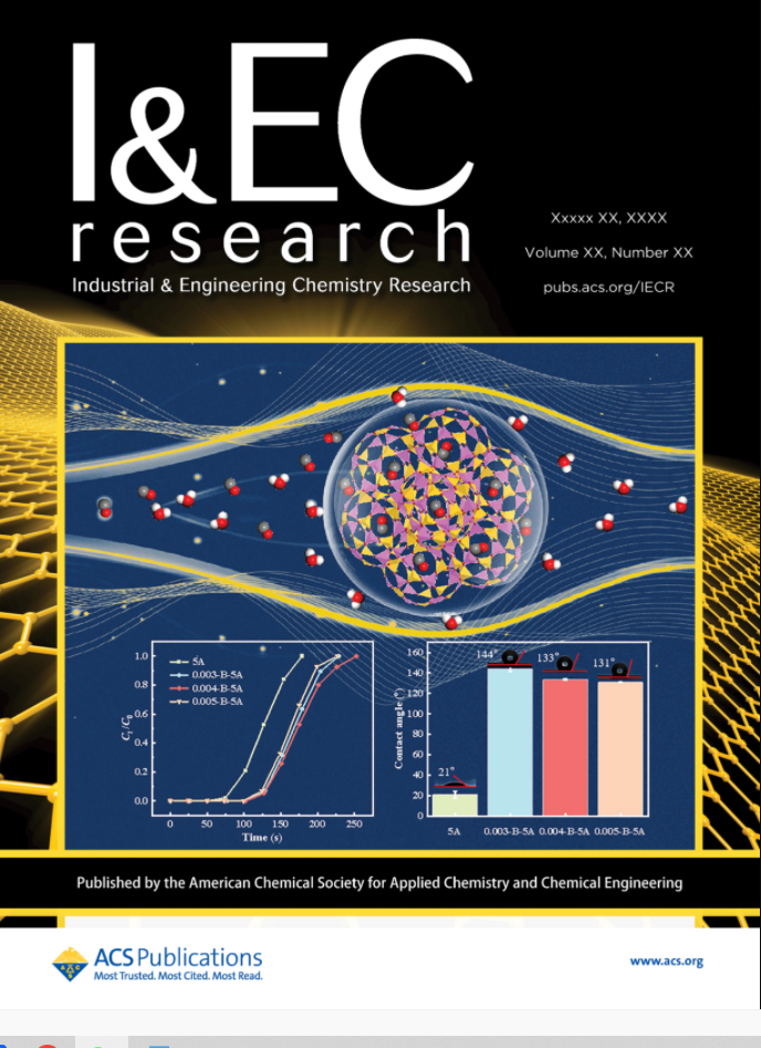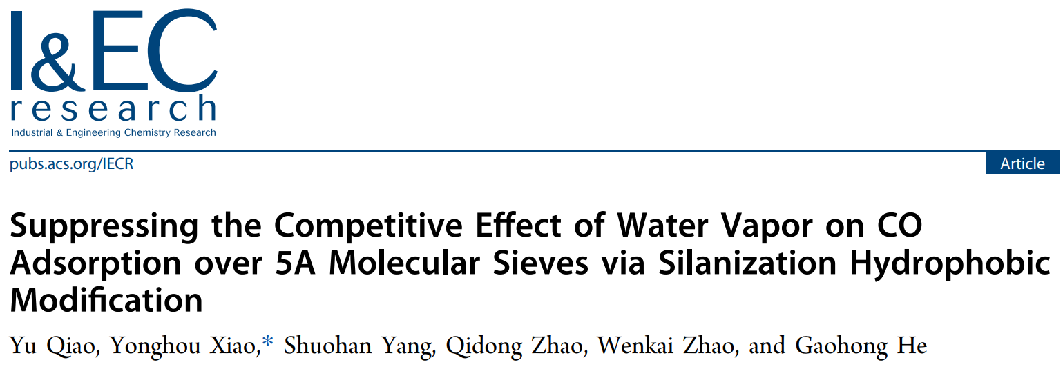 我院能源环境研究室在疏水改性5A分子筛吸附CO方面的研究取得新进展。近日,该成果发表在国际期刊ACS Industrial & Engineering Chemistry Research(JCR二区,IF=4.326),选为副封面文章。